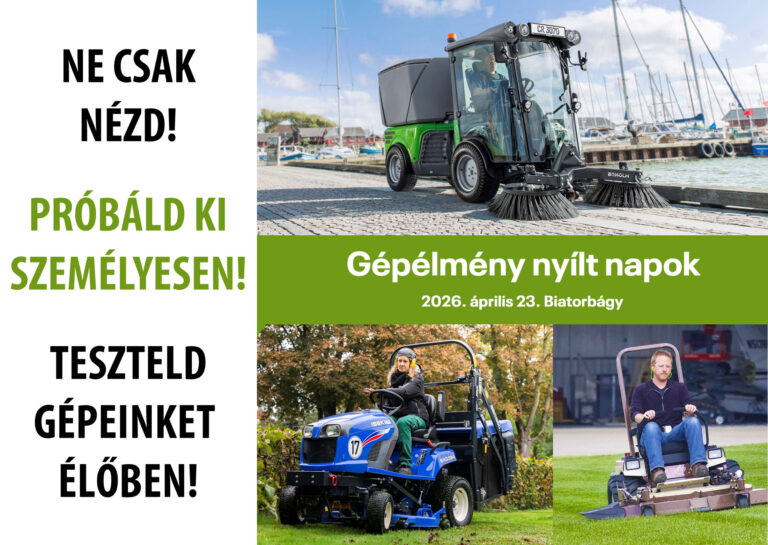 Ismerje meg élőben gépeinket és megoldásainkat! Tisztelettel meghívjuk Önt a Városkert Kft. szakmai nyílt napjára, ahol testközelből tapasztalhatja meg korszerű gépeink teljesítményét és szakértő kollégáink támogatását. Programok Géppark megtekintése, részletes gépbemutató, egyéni vagy csoportos szakmai áttekintés, demogépek kipróbálása, gyakorlati tesztelési lehetőség, valamint átfogó szakmai konzultáció. A részvétel előzetes regisztrációhoz kötött, és időpontfoglalás szükséges. Helyszín: […]