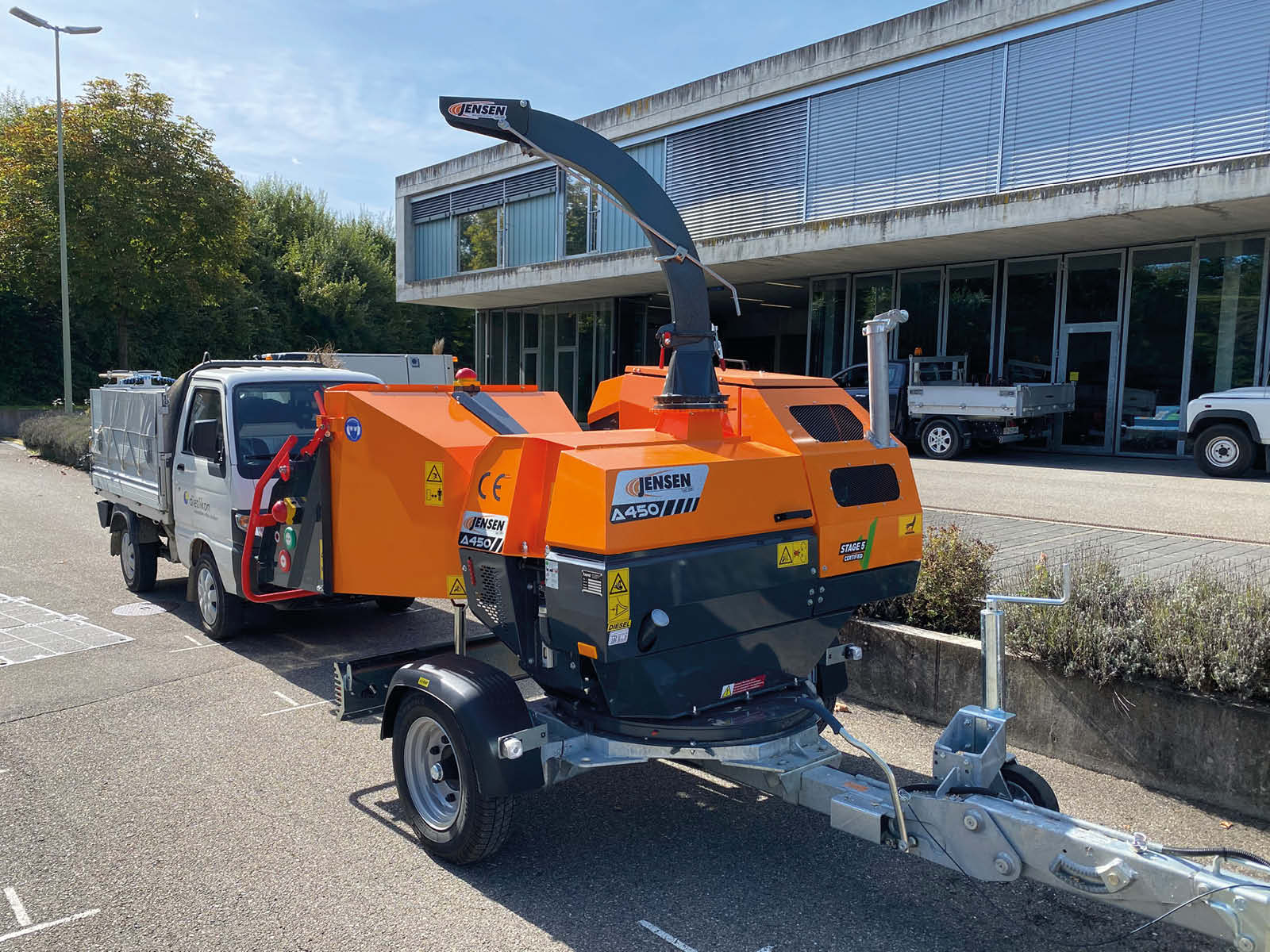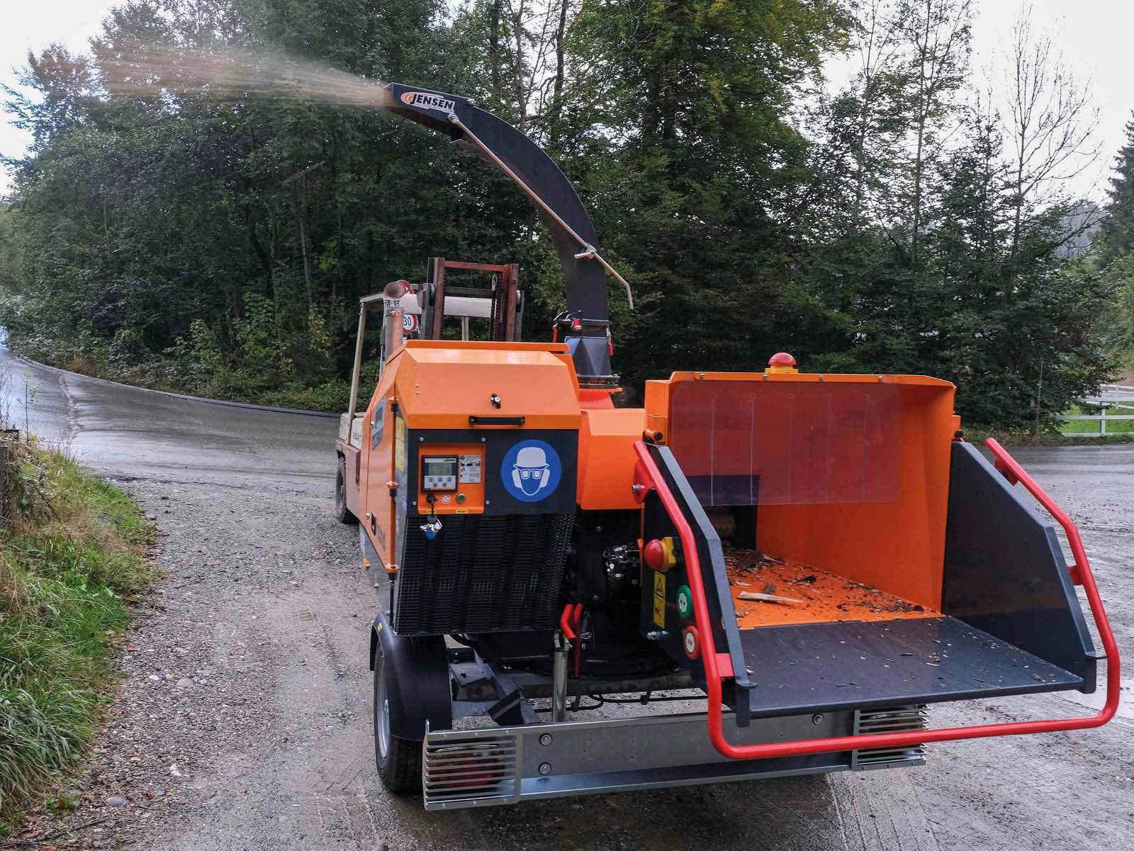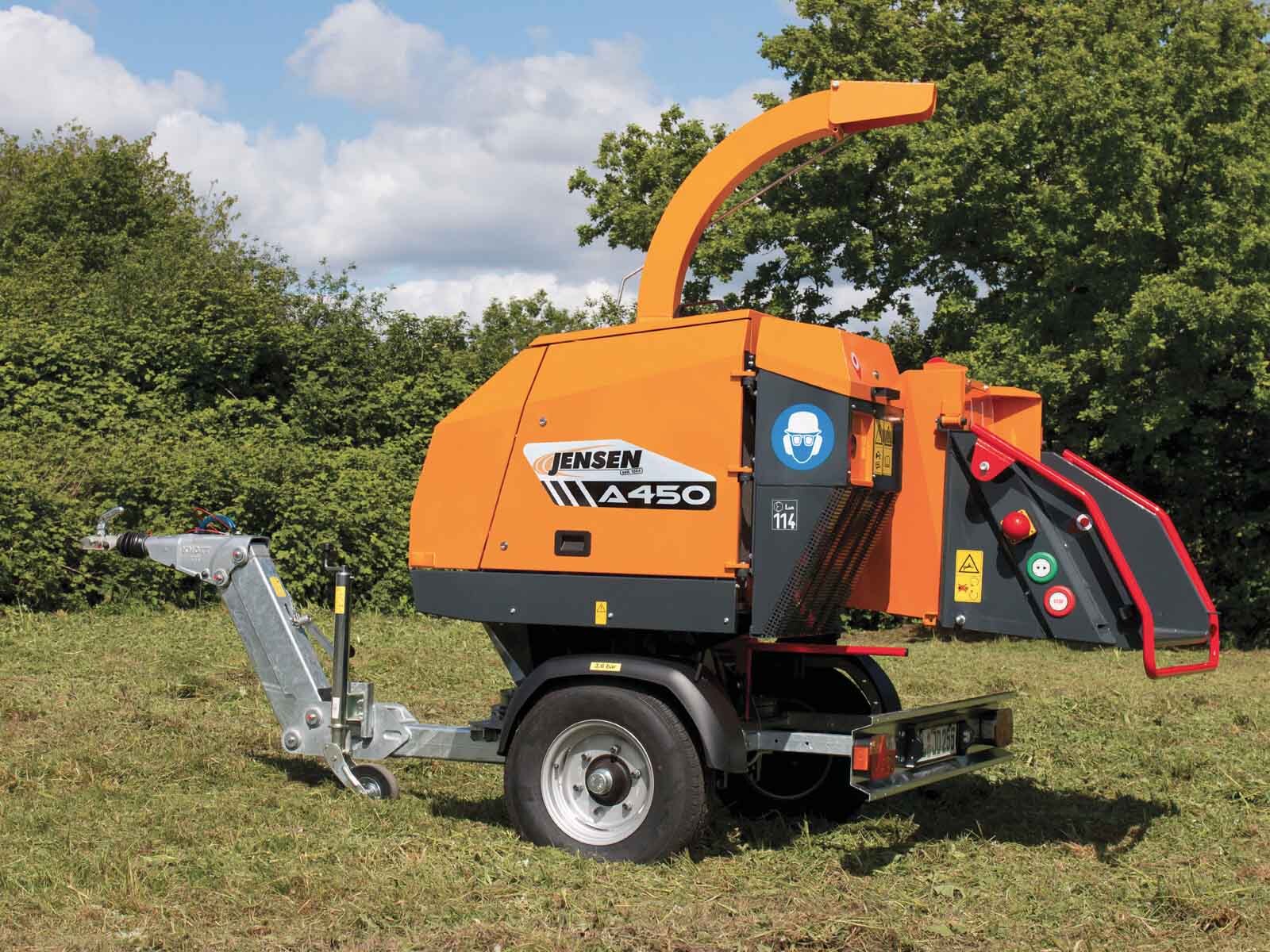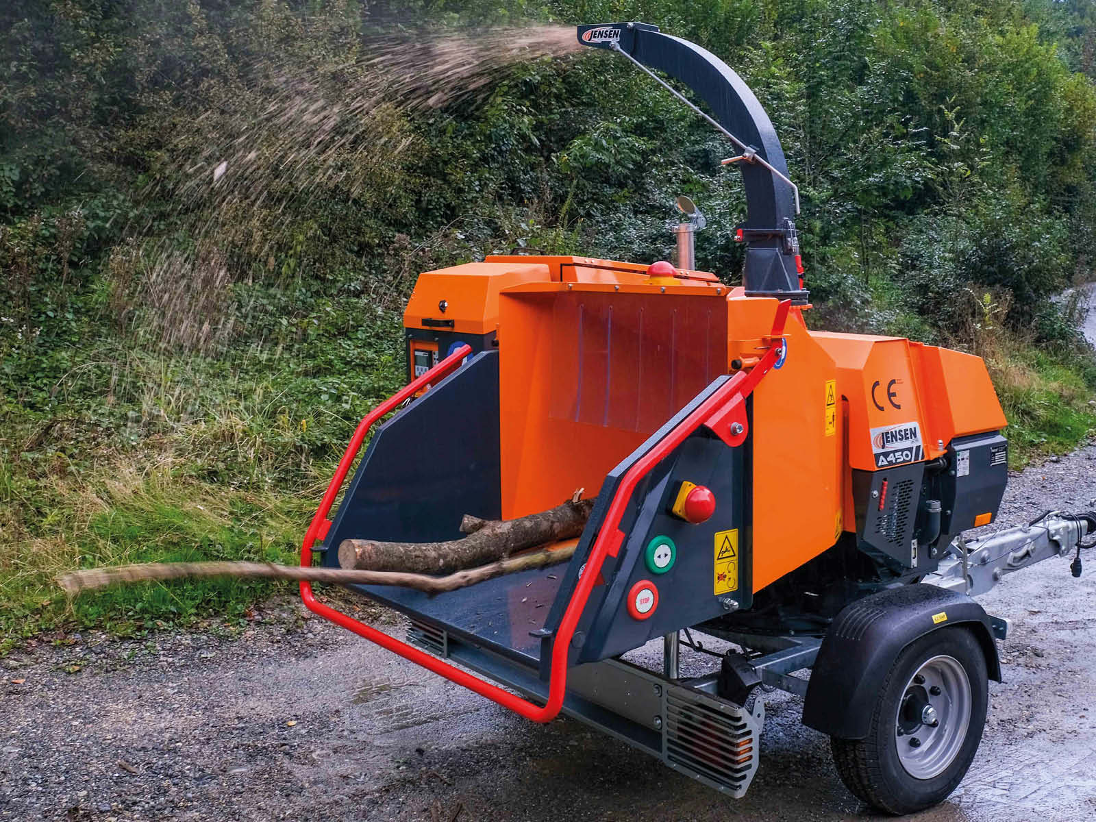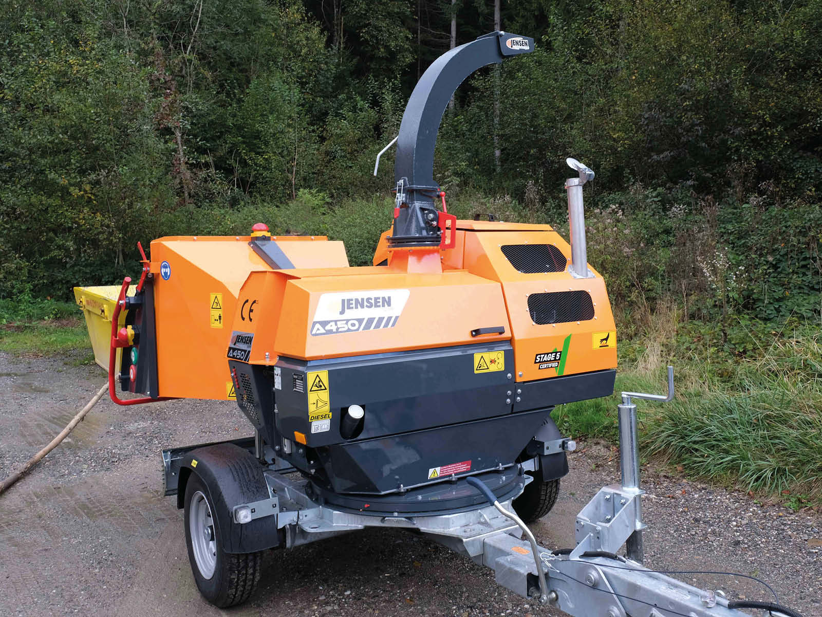 A JENSEN A450 dízelmotoros aprítógép akár 20 cm vastag ágak feldolgozására képes, nagy teljesítményű motorjával és szinkronizált behúzóhengereivel gyors, megbízható munkát biztosít.