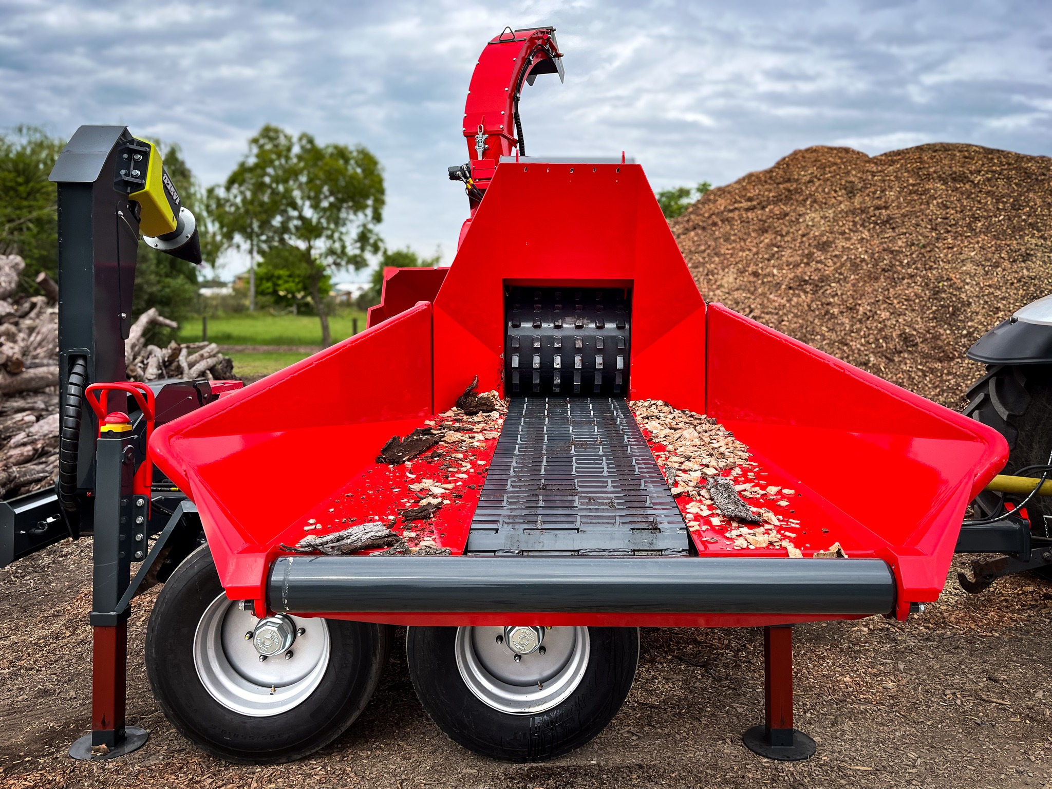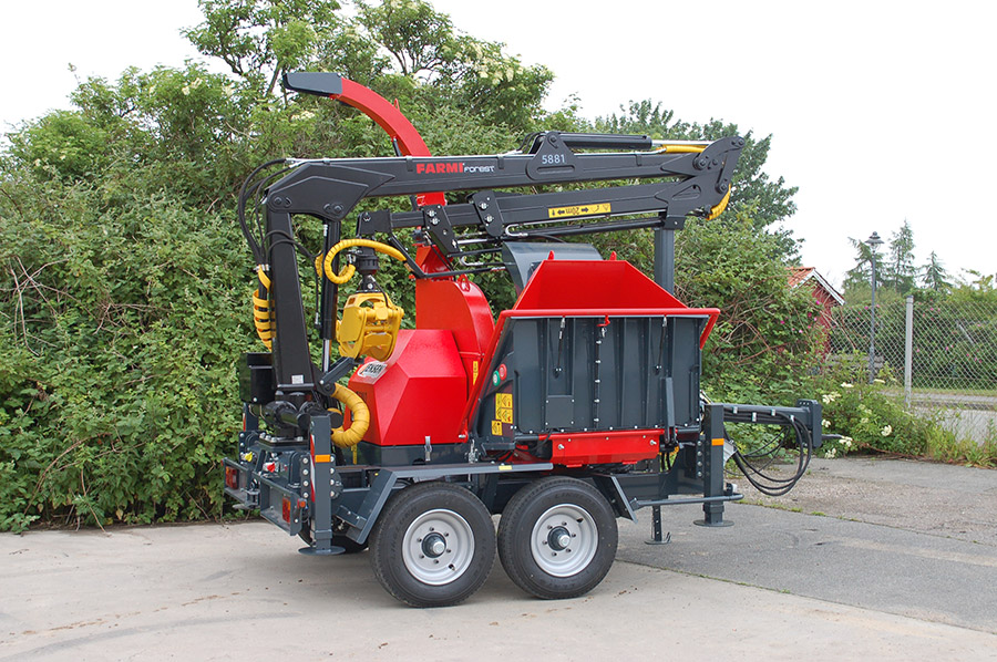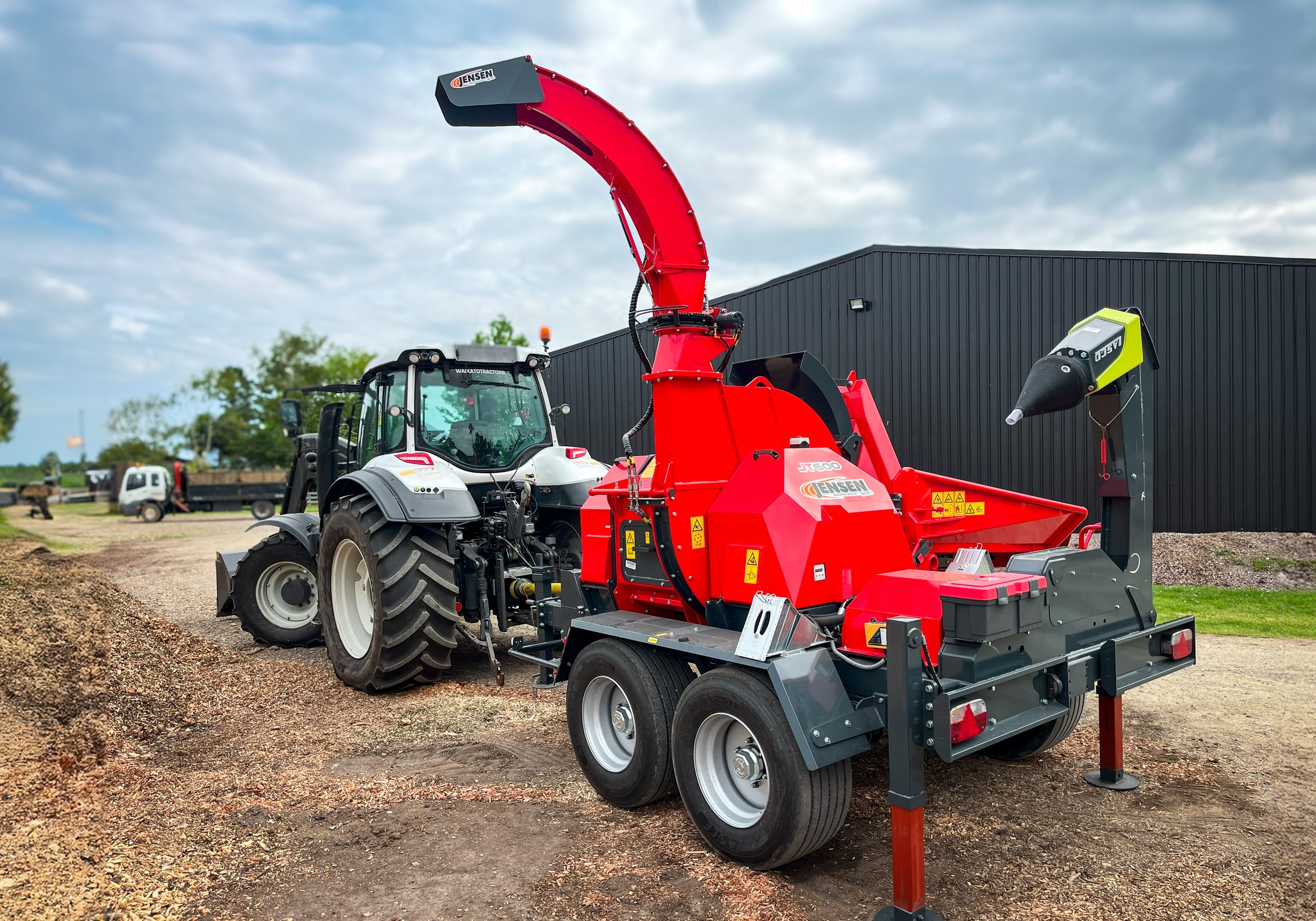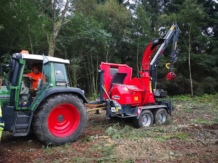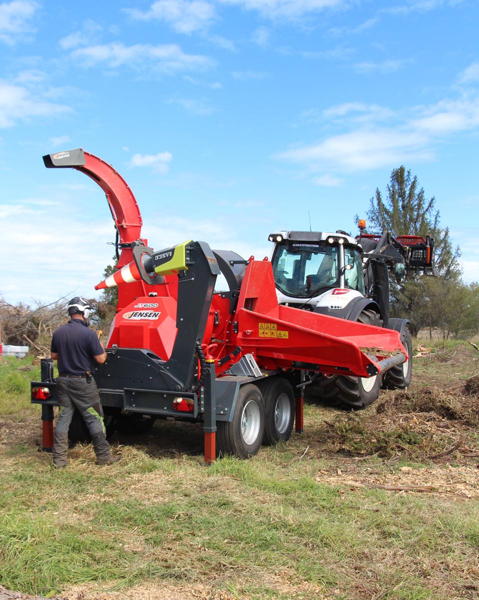 A JENSEN JT 600 professzionális, traktor TLT-meghajtású dobos aprítógép, amely 400 mm átmérőjű faanyag feldolgozására képes, nagy teljesítményt és megbízható munkavégzést biztosítva az ipari felhasználás számára.