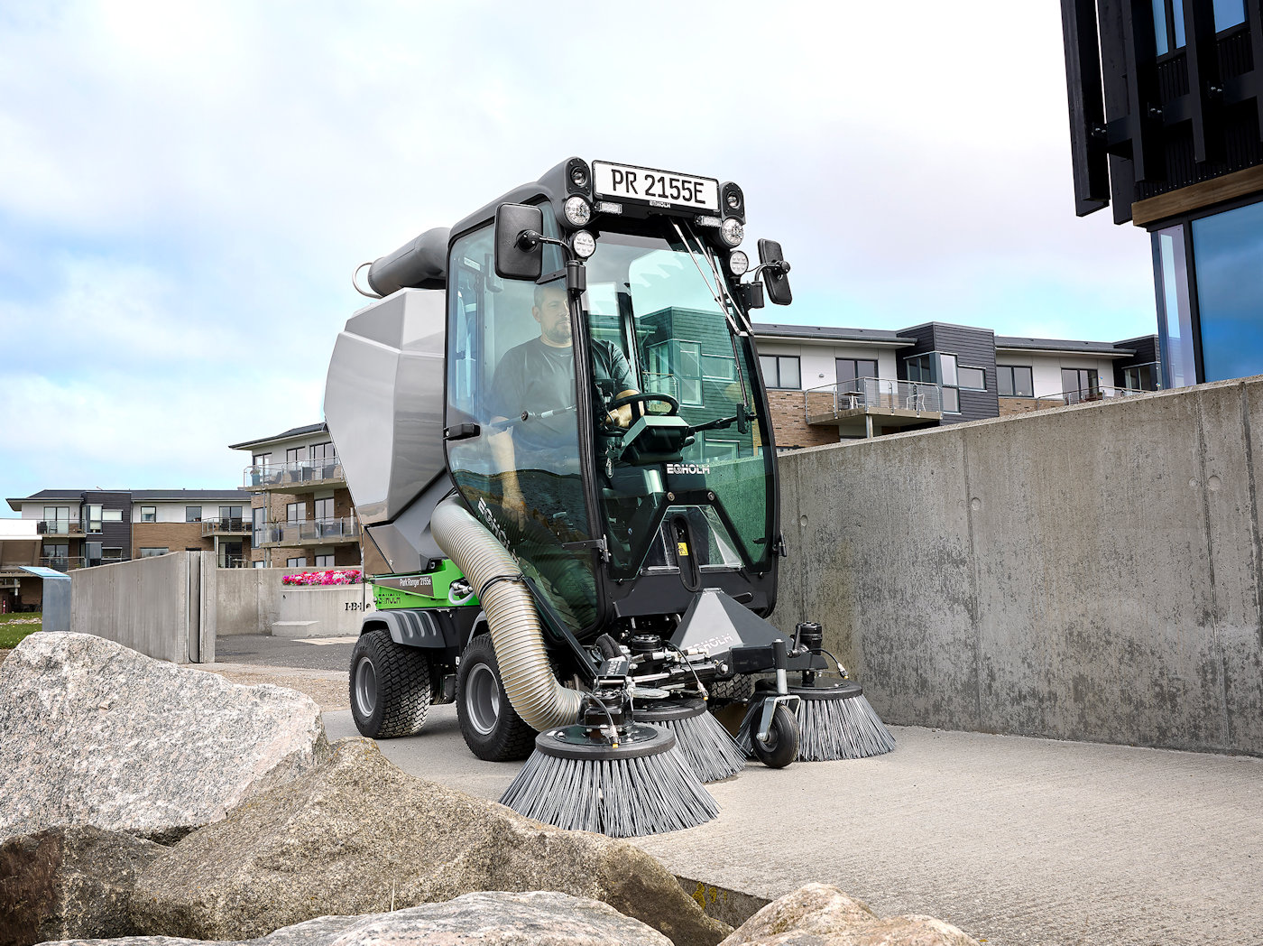 Az EGHOLM Park Ranger 2155 professzionális seprési teljesítményt nyújtó szívóseprőegységgel szerelhető fel. Rendkívül jól manőverezhető – szűk helyeken is -, és alacsony magassága miatt ideális a földalatti létesítményekben történő sepréshez. A szívóseprőegységgel felszerelve a Park Ranger 2155 hatékony választás járdák, járdák, parkolók, lépcsőházak stb. seprésére.